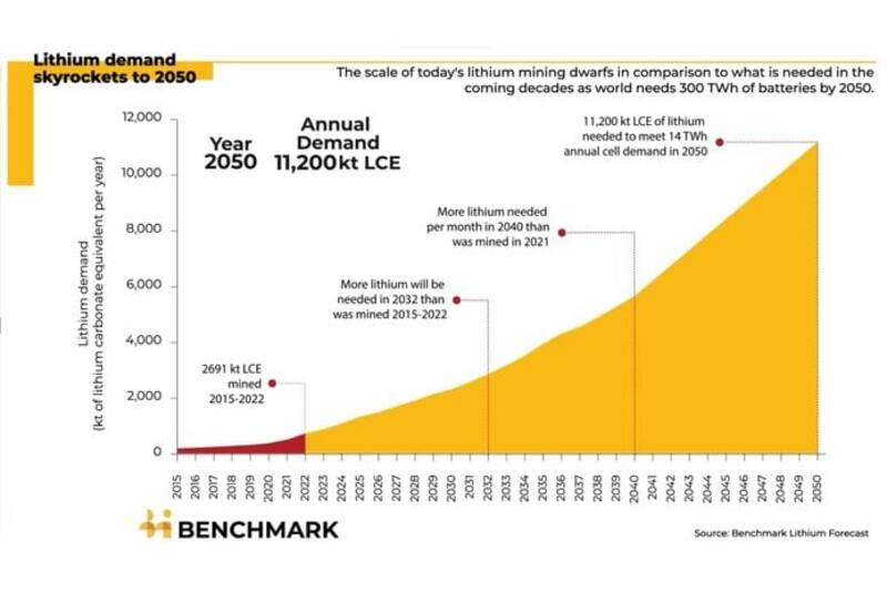 En 2032 será necesario la producción de 2,9 millones de toneladas de este elemento químico, casi lo mismo que ha producido el mundo durante estos últimos siete años.