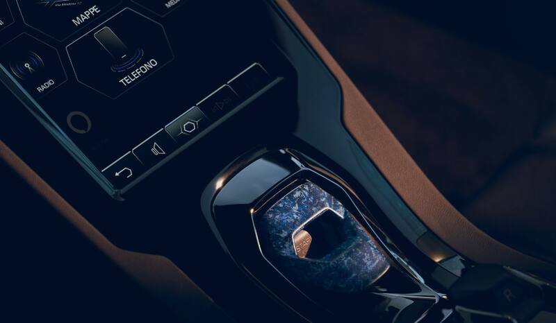 Puertas adentro como nos tiene acostumbrado la marca, asientos deportivos, fibra de carbono en diferentes partes, los paneles de las puertas y la consola están tapizados en cuero. Un gráfico en el panel del asiento está grabado con láser en plata, e incluso la cubierta del botón de arranque y parada de la consola central está acabada en el efecto cristal de la pintura exterior.