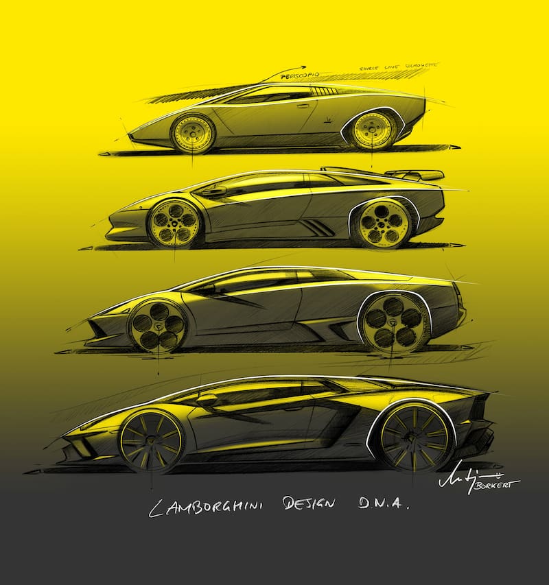 “Hay trabajos de arte que permanecen por siempre relevantes, y la forma del Countach es uno de ellos”, dice Mitja Borjert, jefe de diseño de la compañía. “Su diseño está comprimido en las proporciones perfectas, caracterizadas por una silueta delantera esencial y pura. Su característica distintiva es la única línea longitudinal que conecta el frontal con la vista trasera. Desde un punto de vista estilístico, es una inspiración perfecta porque, incluso cuando el resto del molde se modifique, la línea es un elemento visual continuo entre el pasado y el presente. Es un epítome del ADN de diseño de la casa Lamborghini, la tradición del estilo de lenguaje desde los orígenes hasta nuestros días”, agrega.