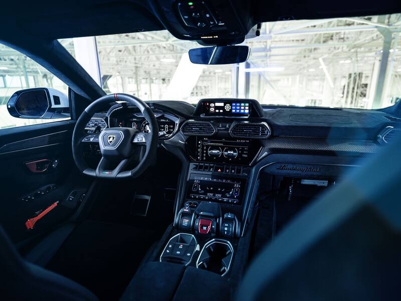 Este Urus Perfomante fue equipado por técnicos de Lamborghini en Sant’Agata Bolognese, en su exterior vemos la combinación del clásico color azul de la policia, con bandas tricolores en los umbrales y cinturón de seguridad. En el techo se instaló una barra de luces led azules de 360°, junto con una sirena eléctrica de dos tonos.