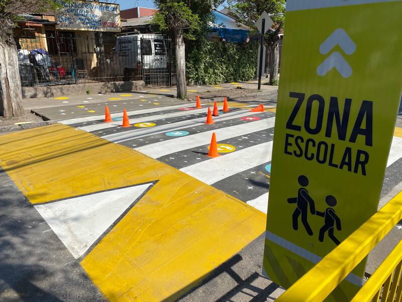 La intervención, que también beneficia a los usuarios de un centro de salud cercano, se diseñó en conjunto con los vecinos del sector para crear nuevos espacios caminables que hagan más visibles a los peatones, en especial a niñas y niños, en una comuna que registra una alta tasa de siniestralidad vial: 225 accidentes por cada 100 mil habitantes.