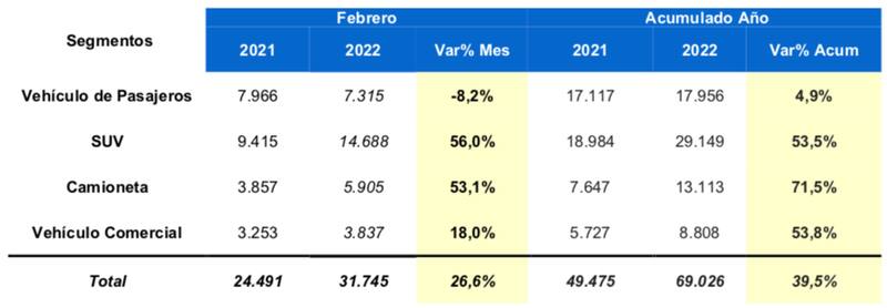 La venta de vehículos nuevos durante febrero volvió a entregar cifras históricas. Según el informe de la Asociación Nacional Automotriz de Chile, durante los dos primeros meses de 2022 se han vendido 69.026 unidades, lo que equivale a un alza del 39,5% en comparación con el mismo registro anterior.