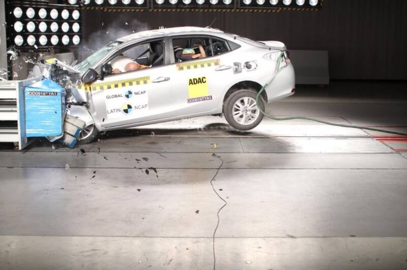 Por su parte, el sedán Yaris producido también en Brasil alcanzó cuatro estrellas para Protección de Ocupante Adulto y cuatro estrellas para Protección de Ocupante Infantil para las versiones hatchback y sedán. “El Yaris equipado con dos bolsas de aire frontales y ESC como equipamiento de seguridad estándar, mostró protección buena para adultos en impacto lateral y protección aceptable a buena en impacto frontal. La estructura fue calificada como inestable que junto a protección aceptable a buena de los ocupantes adultos y sumado a la falta de bolsas de aire laterales para la protección de para la cabeza, limitó la puntuación a cuatro estrellas para Protección Ocupante Adulto”, detalla el escrito