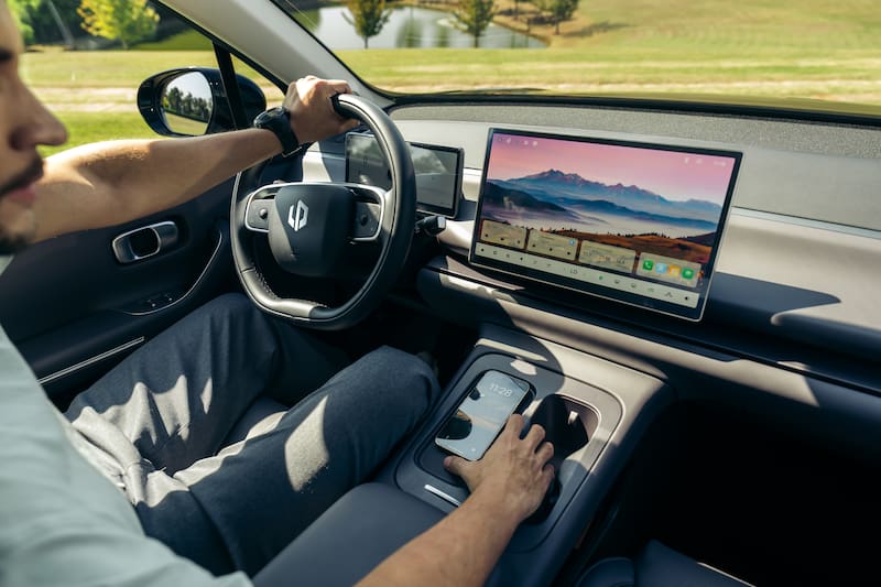 Tiene actualizaciones de software remotas (OTA), por lo que no hay necesidad de acudir a un concesionario; la app Leap+ Connect, que permite utilizar el teléfono como una llave digital, localizar el auto, monitorear carga y autonomía, entre otros; y las funcionalidades inteligentes dentro del vehículo, como los comandos de voz y el sistema de navegación integrado.