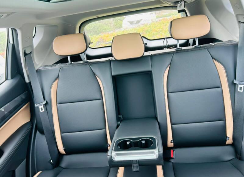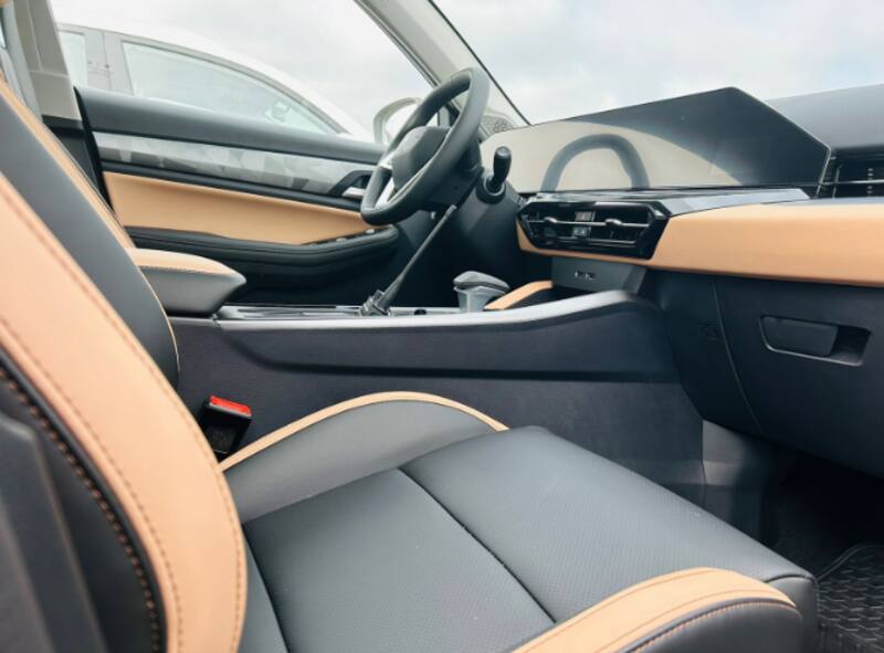 Al interior, el Livan X6 Pro destaca por una tapicería de ecocuero bitono (marrón y negro), además de un tablero compuesto por dos pantallas principales: una de 10,3″ para la instrumentación y otra de 12,3″ para el sistema de infoentretenimiento. Hay en la versión full una tercera pantalla pequeña en el lado del acompañante, desde la que se manejan algunas funciones del auto.