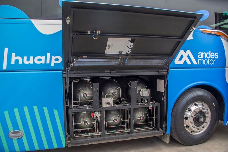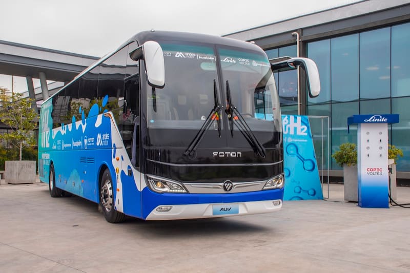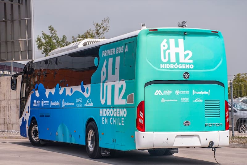 El primer bus interurbano impulsado por hidrógeno verde en Chile fue presentado en Santiago, proyecto impulsado por la agencia estatal Corporación de Fomento de la Producción (Corfo) y la empresa Foton, representada por Andes Motor.