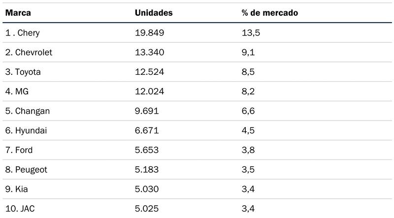 Eso sí, el top ten se mantuvo casi inalterable, con la excepción del Fprd Territory, que ascendió al 9° lugar desde la 12° posición, movimiento similar al del Chery Tiggo 7 Pro, que estaba en el 13° en agosto y que ahora cierra el grupo de privilegio.