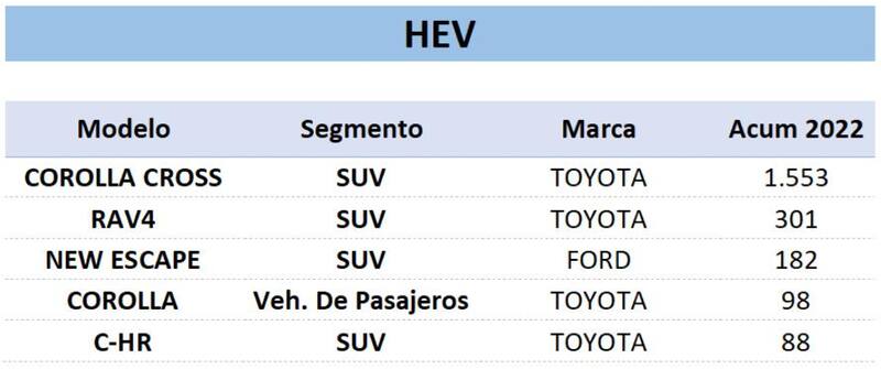 Le siguen los vehículos híbridos convencionales (HEV) con 2.552 unidades vendidas, los 100% eléctricos (BEV) con 1.295 unidades y finalmente los vehículos híbridos enchufables (PHEV) con 474 unidades.