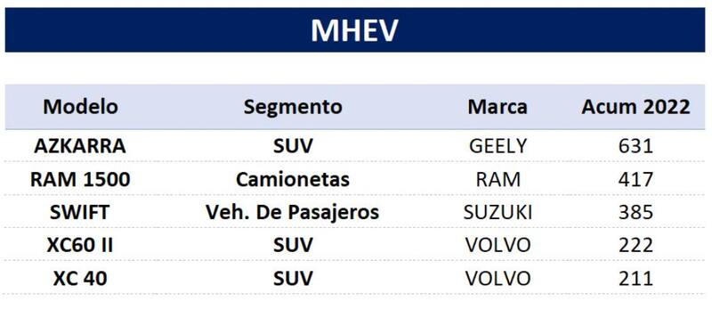 Al analizar los resultados entregados por ANAC, vemos que los microhíbridos (MHEV) fueron los que registraron la mayor venta de unidades en el año con 2.583 unidades inscritas.