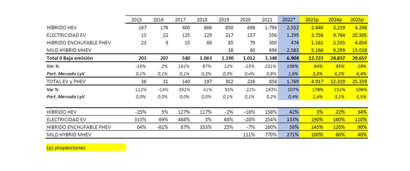Los vehículos de cero y bajas emisiones, incluyendo a los de tecnología híbrida, duplicaron las matriculaciones respecto a 2021 en nuestro país.