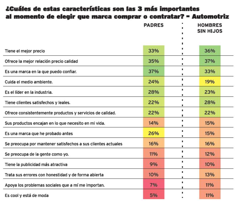 Entonces, para los Padres la característica más importante a la hora de elegir un auto es que puede confiar en la marca, otorgándole un 37% de las preferencias, contra 33% en aquellos que no tienen hijos.