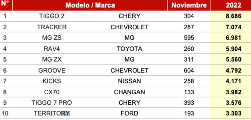 A continuación, el ranking de los 10 SUVs más vendidos este 2022.