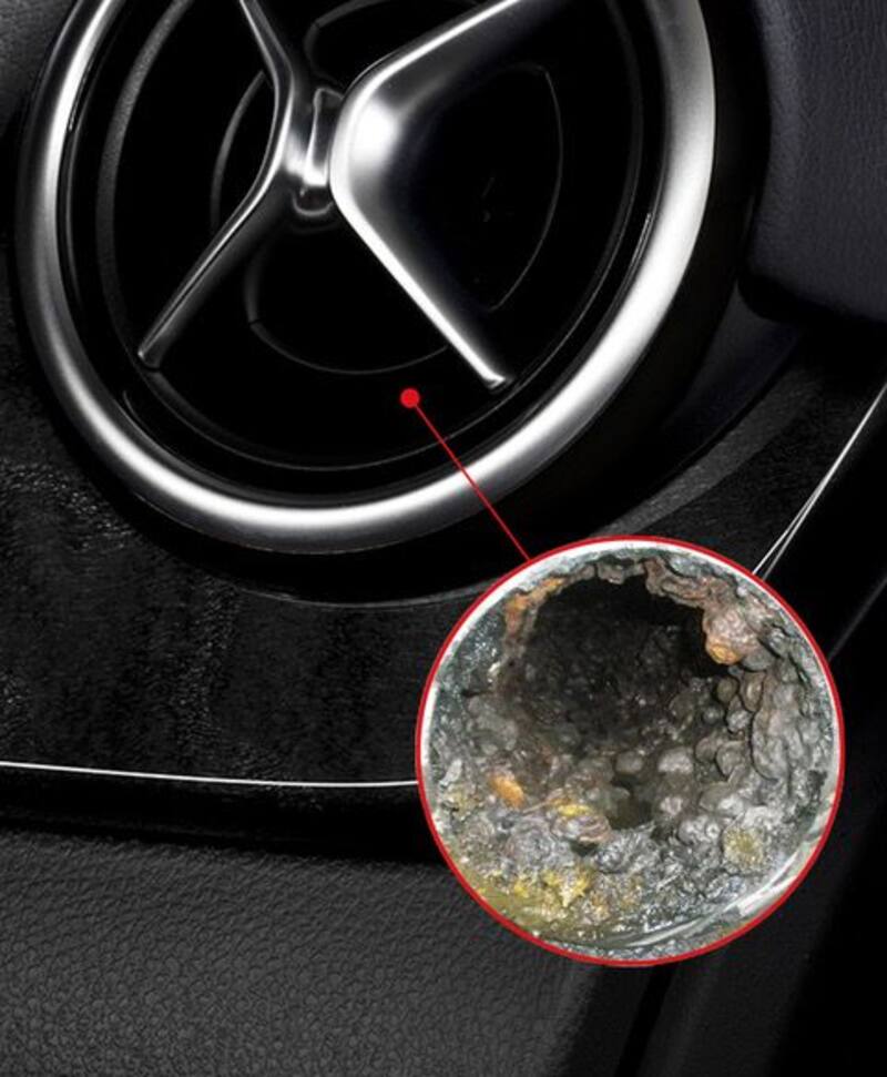 En cualquier vehículo, el aire se distribuye por la cabina a través de los ductos de ventilación, que son alimentados por tuberías o mangueras interconectadas, que traen este aire desde el compresor del aire acondicionado (que funciona con una correa del motor dentro del capó). Muchas veces, producto de la humedad y el desuso, estos conductos van acumulando moho y hongos en el interior, produciéndose este desagradable olor.