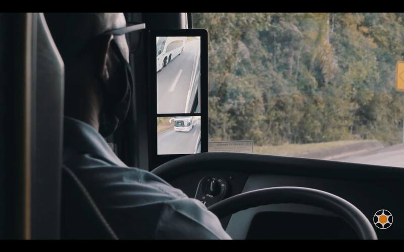 En concreto, el sistema cuenta con dos cámaras externas HD que capturan imágenes en tiempo real y son visualizadas por el conductor en dos pantallas ubicadas en los lados izquierdo y derecho de la cabina del vehículo. El control del ERV se activa en el panel de instrumentos, con opciones de día, noche, lados izquierdo y derecho y movimiento en un ángulo de hasta 90º para ver todo el espacio a los lados del bus.