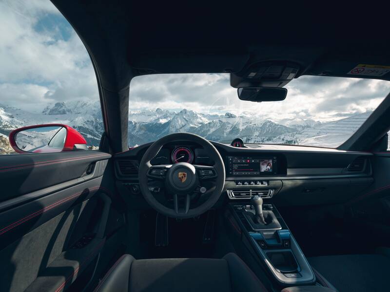 Los ingenieros también han ajustado la capacidad de frenado para adecuarla a las prestaciones del GTS, implementando el sistema de frenos de alto rendimiento del 911 Turbo. Las llantas de aleación de 20 pulgadas (delanteras) y 21 pulgadas (traseras) de color negro, llevan la tuerca central fijada a la maza vista otra vez en el mencionado 911 Turbo. “El sistema de escape deportivo de serie es responsable de una banda sonora aún más emocionante, gracias a una configuración específica para el GTS”, detallan desde Stuttgart.