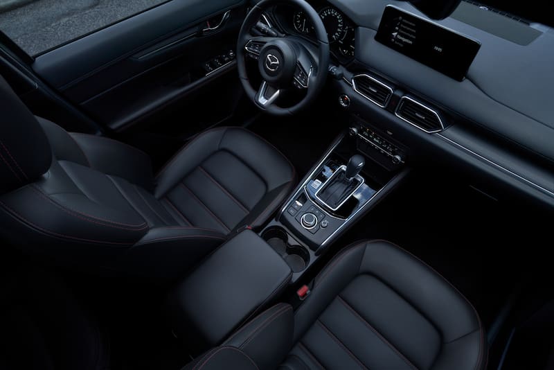 En lo que se refiere a confort y conectividad, el New Mazda CX-5 incluye -según versión- climatizador bizona, asientos delanteros eléctricos, calefaccionados y ventilados; asientos traseros laterales calefaccionados, sistema multimedia Mazda Connect con pantalla TFT de 8″, cargador inalámbrico, Android Auto & Apple CarPlay y cámara de retroceso; velocímetro digital de 7″, sistema de audio con nueve parlantes y 1 subwoofer Bose, freno de mano eléctrico, control crucero con comandos al volante, luces frontales y diurnas led, focos delanteros con nivelación automática, espejos laterales eléctricos y plegables desde el interior con señalizador; sunroof eléctrico, sensor de lluvia, doble salida de escape cromada, volante forrado en cuero y calefaccionado, y cámara 360.