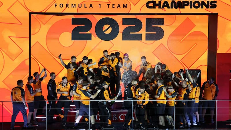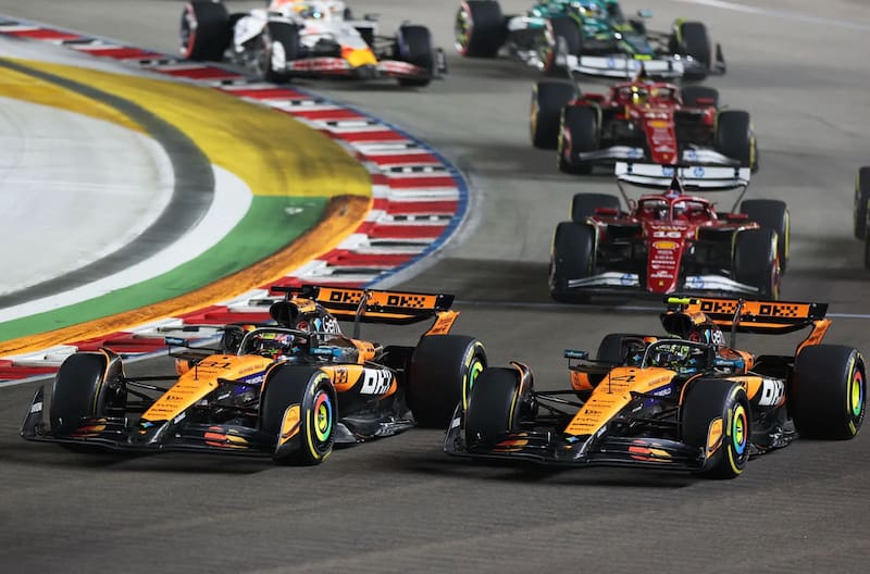 En el podio del circuito de Marina Bay, el “We are the Champions”, de Queen, volvió a escucharse para la escudería británica, que terminó la carrera con Lando Norris en tercer puesto y Oscar Piastri, el líder del campeonato, en cuarto lugar.
