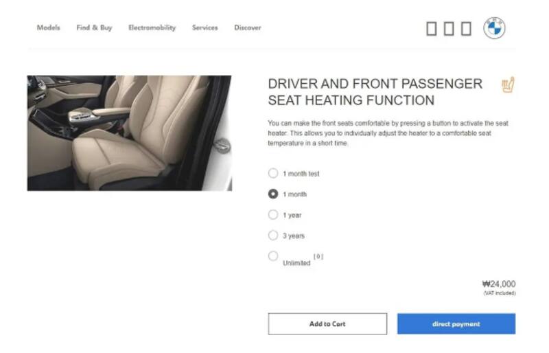 BMW ya experimenta en este campo de pago por uso. En Corea del Sur, el fabricante bávaro acaba de implantar el servicio de suscripción para obtener la posibilidad de activar los asientos calefactados en sus modelos.