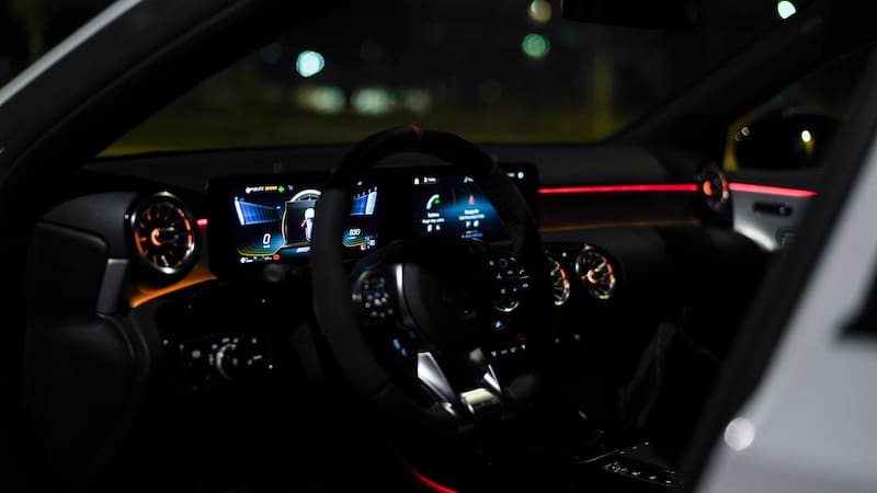 En cuanto a la información, equipa dos pantallas de 10,25″. La primera aloja el cuadro de instrumentos, mientras que la segunda preside el sistema de infoentretenimiento cuyos sonidos se reparten en el habítulo a través de 10 altavoces. Los asientos son AMG Performance de competición.