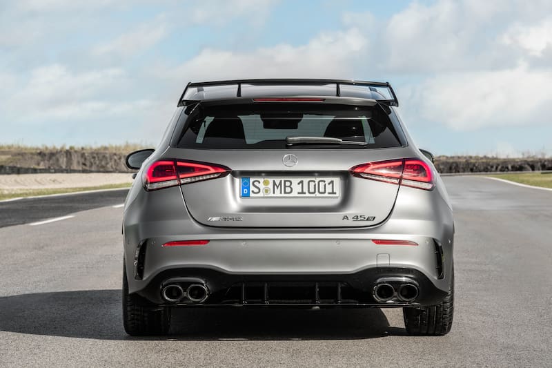 En materia visual, el más poderoso de la Clase A está equipado con llantas de 19 pulgadas, vestidas con neumáticos Michelin Pilot Sport 4S de 245 mm de ancho en las cuatro ruedas. Los discos de frenos delanteros son de 360 mm de diámetro, en tanto que los traseros son de 330 mm. Asimismo, las pinzas de freno son rojas de seis pistones adelante y monopistón atrás.