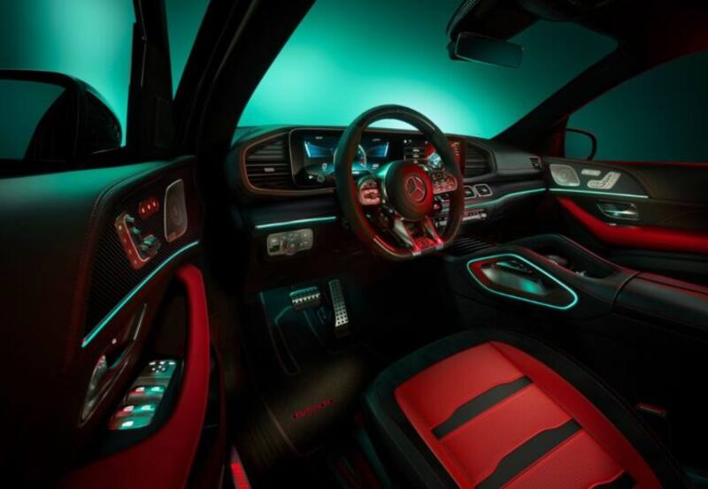 Al interior de estos Mercedes-AMG GLE y GLE Coupé ‘Edition 55′ domina el negro y el rojo. Así, los asientos están tapizados en cuero napa rojo y perforado, con acentos en negro, a juego con los paneles de las puertas y de la consola central, mandando ambas tonalidades.