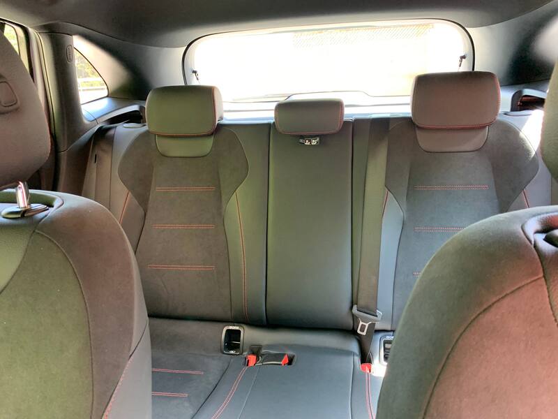 La limpieza visual se agradece y la calidad de los materiales del tablero, del tapiz (mezcla de cuero ártico y microfibra) y de los paneles de las puertas se siente y disfruta. En la versión testeada: el Mercedes-Benz GLA 220d 4Matic también entran a tallar unos bonitos pedales de aluminio que añaden un tono puramente sport. Para las plazas traseras, lo dicho, el espacio es generoso y se halla la aleación de piel y microfibra porosa. Incluso, para las dos plazas traseras laterales hay una almohadilla sobresaliente para la zona posterior de las rodillas, que ayuda a que el viaje sea más placentero.