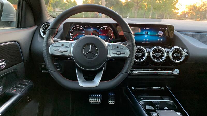 Puertas adentro el SUV más chico de los alemanes anuncia de inmediato su estirpe con un habitáculo propio de Mercedes-Benz. Son muy reconocibles detalles como los colores azulinos del sistema MBUX (Mercedes-Benz User Experience), o los diseños como el volante forrado en cuero napa, con un centro redondo perfecto; las salidas de aire con forma de turbina o del trackpad que se apodera de la consola central, aprovechando la ausencia del selector de marchas (en Mercedes-Benz el switch de la caja está por detrás del volante, en una manecilla a la derecha).