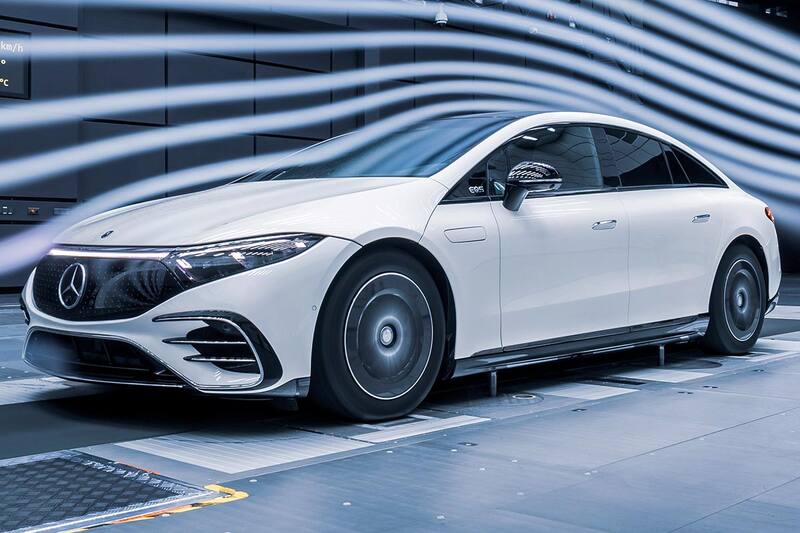 Mercedes anuncia un Cx de 0,20. Todo un récord que también debe al carenado de los bajos, la grilla cerrada, los tiradores enrasados en las puertas, los vidrios sin marcos y al capó clamshell, que se extiende hasta los pasos de rueda, por ejemplo.