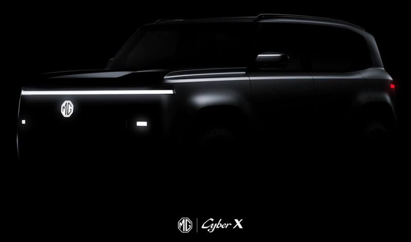 Tras describirlo como una “innovación revolucionaria” en su historia centenaria, MG anticipa al CyberX en medio de penumbras. Aún así se puede vislumbrar la impronta de un clásico todoterreno, de formas sumamente cuadradas, grandes pasos de rueda y un capó abultados en los extremos.