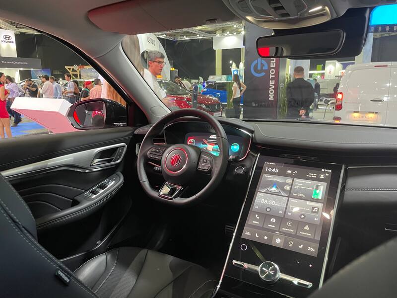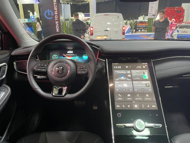 Puertas adentro, nos encontramos con un ambiente espacioso, con una pantalla táctil de 19,4″ con conexión a Apple CarPlay y Android Auto, su panel digital de 12,3″, cargador inalámbrico, sunroof panorámico, asistencia activa MG Pilot y cámara 360.