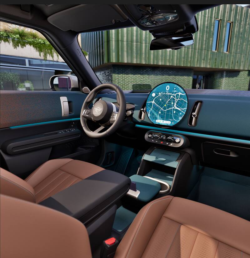 Proveniente de la fábrica de Leipzig, en Alemania, el nuevo MINI Coutryman también presenta un interior completamente renovado donde sobresale su nueva pantalla redonde OLED táctil de 24 centímetros de diámetro, única en el mercado, la cual muestra al usuario toda la información del automóvil.