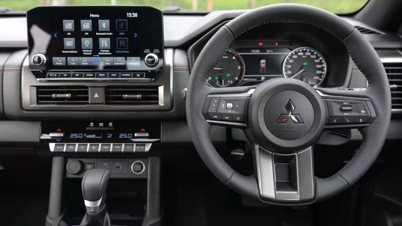 El interior es bastante similar a lo que se ofrece en el Mitsubishi Outlander, con un estilo horizontal, pero que mantiene un par de relojes análogos en el tablero, los que se combinan con la modernidad de las pantallas digitales para el sistema de infoentretención, además de botones inspirados en la aviación, mientras en conectividad dispone de carga inalámbrica para el teléfono.