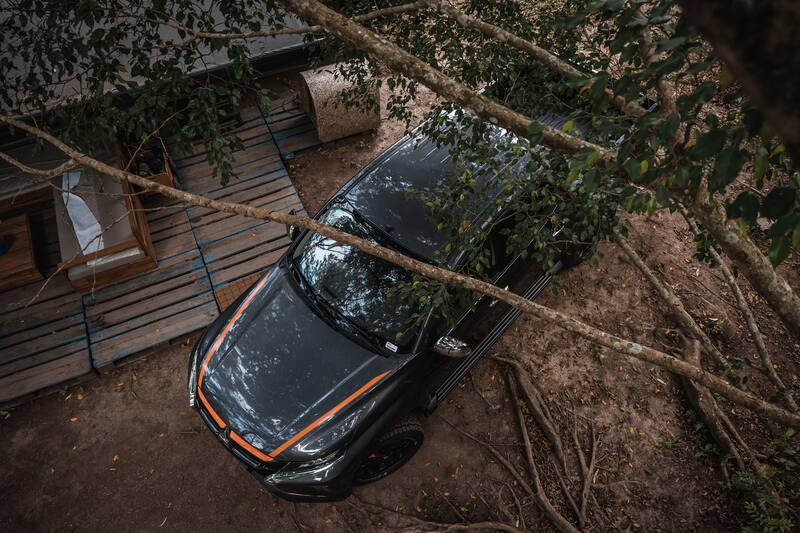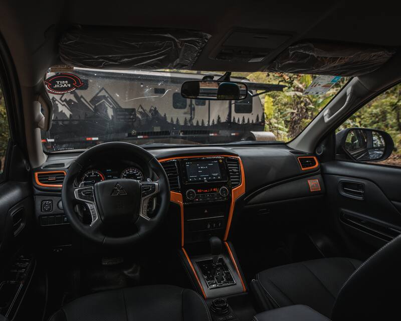 Los aditivos de la Sertões son completamente estéticos y recaen en un interior con molduras naranjas, por ejemplo en las salidas de aire, e inscripciones que dan cuenta de la naturaleza del modelo. Por fuera también hay líneas y letras anaranjadas en las vistas laterales, frontal y trasera, que contrastan con el tono de carrocería grafito y ruedas de 18″ también en este mismo color. Si bien las gomas son de uso mixto, tienen un enfoque evidentemente más puesto en el off-road: son de 265/60.