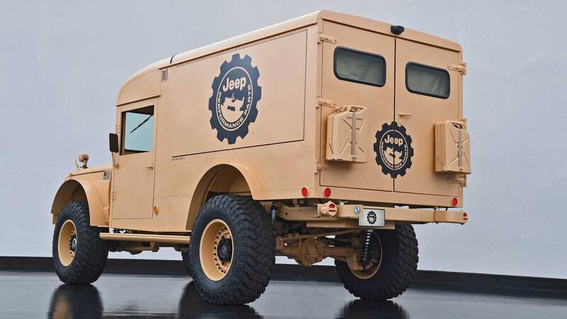El modelo militar que llevará Mopar se llama Kaiser Jeep M725 Concept y, como señalábamos, toma la idea de una ambulancia Kaiser Jeep M725 del ejército en 1967, transformada en un vehículo todoterreno de servicio y en un auténtico catálogo rodante por su extensa variedad de productos Jeep Performance Parts (JPP).