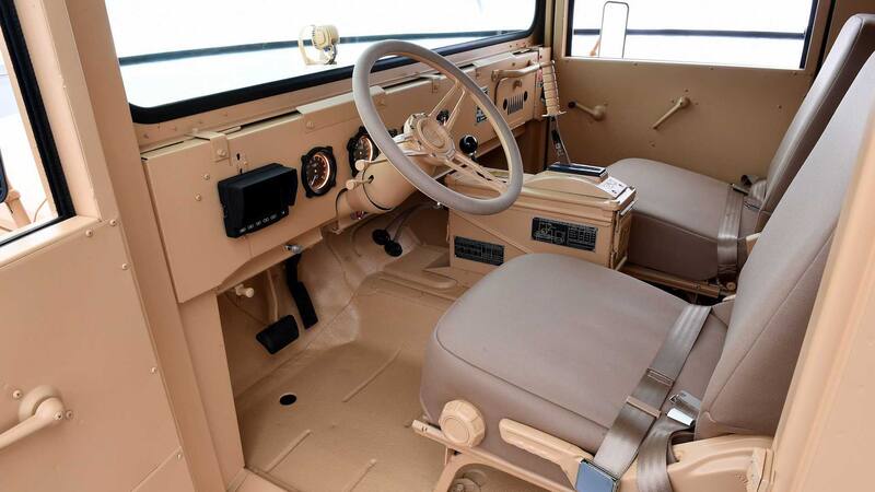 La consola central, también personalizada, está elaborada a partir de una caja de municiones reconvertida, y aloja el selector de la caja de transferencia y la palanca de cambio.