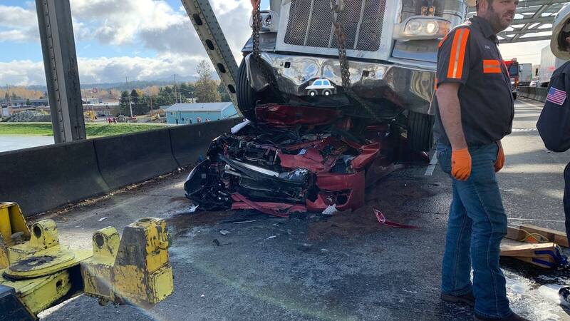 De acuerdo con lo que informa The Seattle Times, el siniestro ocurrió cuando se registró una detención inesperada del tránsito. La mujer frenó en su Nissan Altima, sin embargo, el camión Peterbilt que venía detrás no alcanzó a detenerse, impactando por detrás con mucha fuerza.