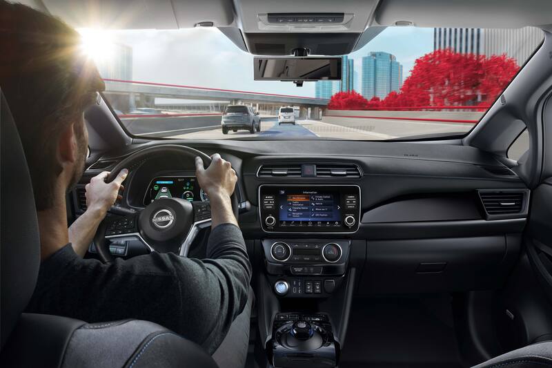 Respecto de asistencias a la conducción, el Nissan Leaf incluye frenado inteligente de emergencia, control crucero inteligente, asistente inteligente de cambio de carril, monitor Inteligente de visión 360, alerta de tráfico cruzado, alerta de punto ciego, control inteligente de tracción, entre otras.