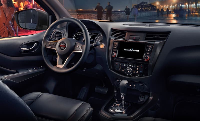 Otra innovación está dada por una parrilla V-Motion más imponente, donde destaca el grabado ‘N A V A R A’ en el bisel del borde del capó, que cierra por encima el conjunto de la toma de aire principal. Asimismo, las luces delanteras son LED, con un diseño en C en el caso de la circulación diurna, mientras que los grupos principales disponen de cuatro proyectores para alternar automáticamente entre las iluminaciones de bajas y altas. En el último tramo del costado van logotipos Pro-4X, mientras que en la zaga otra vez se encuentra en relieve y extendida por todo el ancho del portalón la leyenda ‘N A V A R A’.