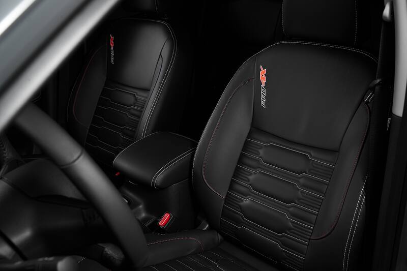 Pie en la pisadera y a subir. En el interior, lo primero que salta a la vista son las butacas delanteras. Se trata de asientos en cuero negro con hilos blancos y que llevan un vistoso bordado transversal ‘Pro-4X’ en los respaldos. Aquí se percibe estar en una top line.
