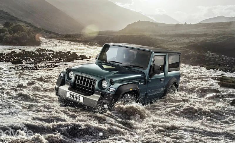 Mahindra dice que el Thar 4x4 es resistente a la humedad y el polvo, acreditado con el índice IP54, y que además su piso es lavable para lo cual tiene tapones. Sus ángulos de aproximación, ventral y de salida son de 41,8º, 27º y 36,8º, respectivamente. Puede vadear 650 mm, más del doble del Jimny y solo 110 mm menos que un Jeep Wrangler.
