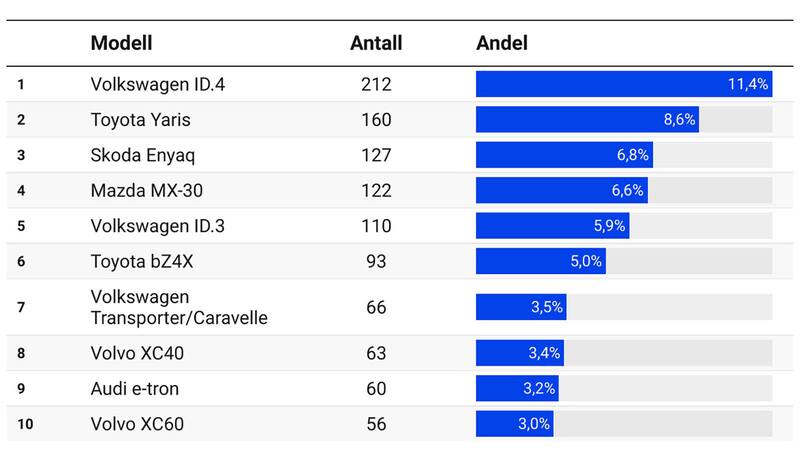 Otro de los puntos que cambió fue la posición de los 10 autos más vendidos, ya que en el último tiempo no se habían visto que en este ranking ingresarán autos a combustión. De esta manera, el Toyota Yaris híbrido quedó en el segundo puesto, el Volkswagen Transporter Caravelle en la séptima y el Volvo XC60 en el décimo puesto.