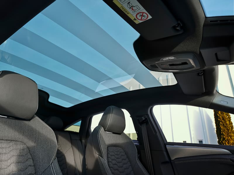 Naturalmente, se roba la atención el techo panorámico inteligente de cristal con control de transparencia.