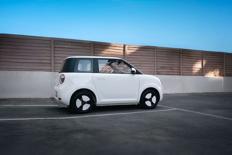 Tiene dos puertas, llantas aro 14, manillas ocultas, líneas rectas y superficies suavizadas, mientras que en la zaga sobresalen los focos redondos.