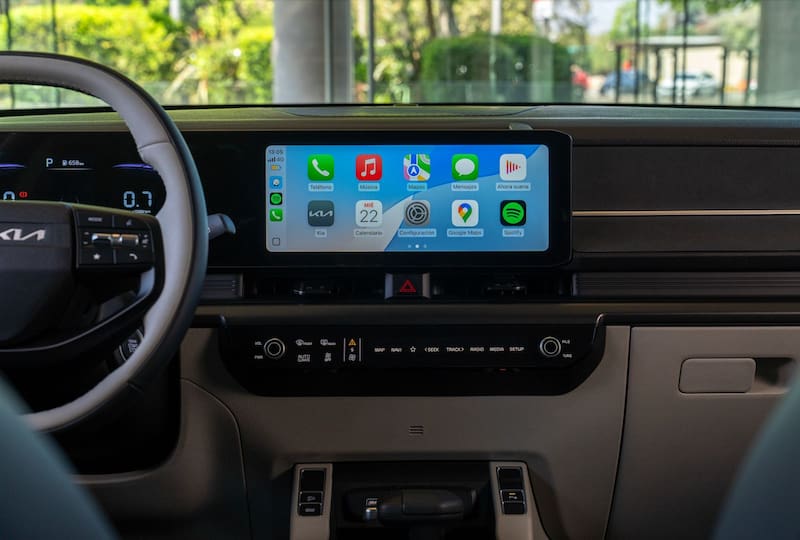 Además, incorpora un clúster de supervisión LCD a color de 4,2”, una pantalla táctil LCD de 8 o 12,3 pulgadas según versión, junto con un sistema de infoentretenimiento compatible con Apple CarPlay y Android Auto inalámbricos, además de Bluetooth con reconocimiento de voz. Para una mayor conectividad interior, a lo largo de sus tres filas de asientos ofrece 6 puertos USB en total (2 frontales, 2 segunda fila, 2 tercera fila), y cargador inalámbrico para celulares frontal.