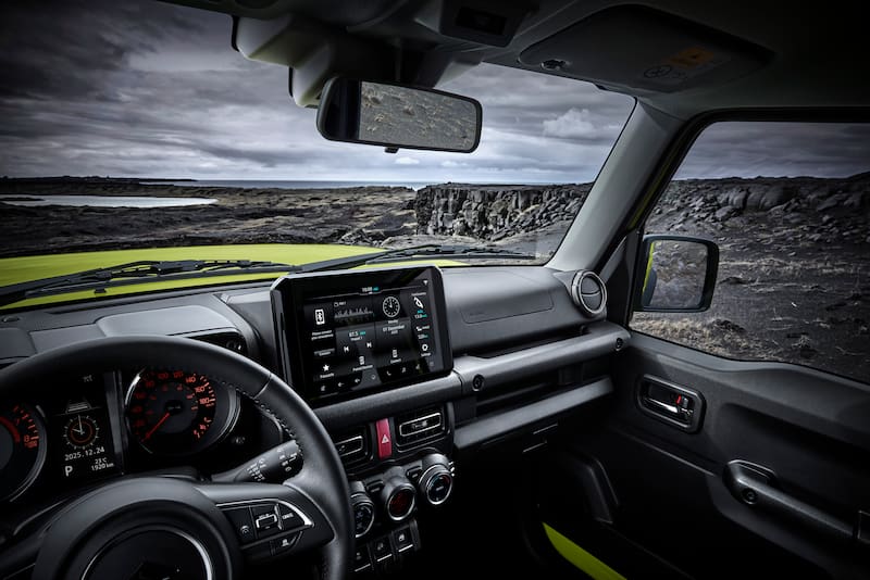 En el ámbito off-road, el Jimny mantiene su esencia intacta: chasis de largueros, ejes rígidos, caja reductora y el sistema de tracción AllGrip Pro con modos 2H, 4H y 4L. Estas características lo posicionan como uno de los vehículos más capaces del segmento para enfrentar terrenos complejos.