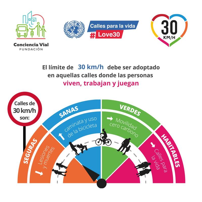Por estos días se celebra la 6ª edición de la Semana Global de Naciones Unidas para la Seguridad Vial. Entre el 17 al 23 de mayo, el organismo global potenciará la campaña #Love30, que aboga por Calles Para la Vida mediante el establecimiento del límite de velocidad de 30 km/h en ciudades de todo el mundo, especialmente en zonas donde hay gran convivencia de peatones, personas en bicicleta o distintos ciclos y vehículos motorizados. El objetivo es lograr calles seguras, saludables, ecológicas y adecuadas para convivir, disminuyendo los siniestros con resultado de muerte.