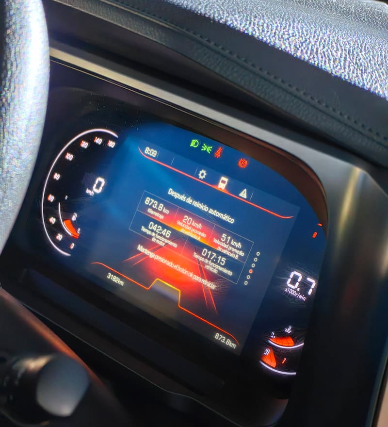 Cuenta con un volante multifunción, el cual nos da paso a un cuadro de instrumentos digital de 7 pulgadas e impecable resolución, que ofrece toda la información del manejo, consumos, autonomías, datos de viaje y que además, está traducido al español.
