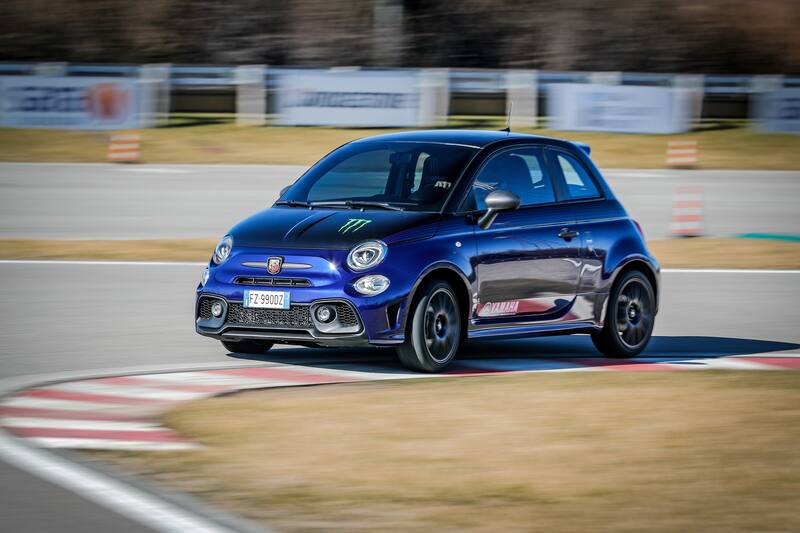 Este Abarth está inspirado en el carenado de la Yamaha YZR-M1 del MotoGP 2020. Está remata con la garra de Monster en el capó y los colores oscuros contrastan con los acabados alquitrán gris frío en las empuñaduras de las puertas.