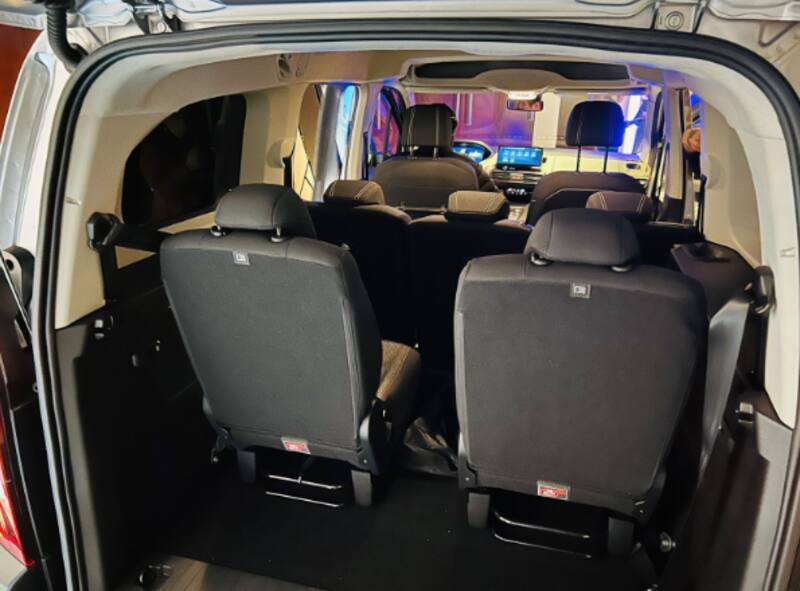 Fabricada en Vigo (España), este modelo arriba en un único largo de carrocería con 4.755 mm de largo, 2.107 mm de ancho, 1.837 mm de alto y 2.975 mm entre ejes. Dimensiones con las que acomoda fácilmente a siete personas, en configuración 2+3+2. Su maletero, en tanto, permite guardar 209 litros de carga detrás de la última fila. Con solo dos filas de asientos disponibles, su capacidad se amplía a 1.050 litros.