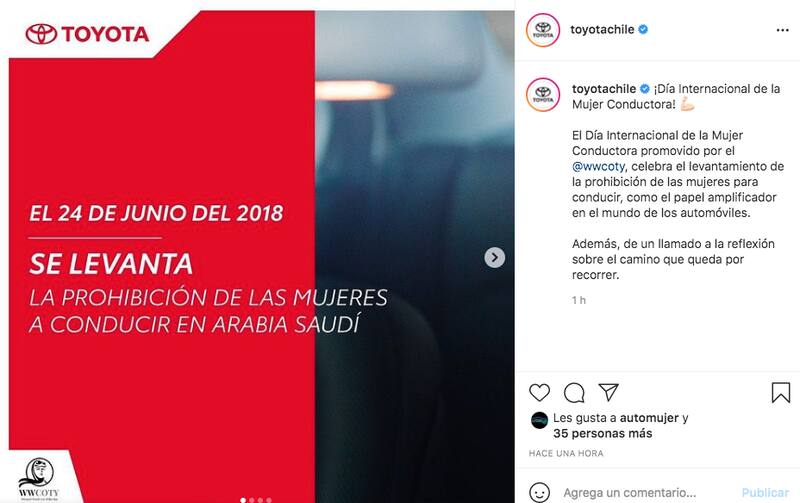 Toyota, por su parte, precisó a través de sus redes sociales que “el Día Internacional de la Mujer Conductora promovido por el @wwcoty, celebra el levantamiento de la prohibición de las mujeres para conducir, como el papel amplificador en el mundo de los automóviles. Además, de un llamado a la reflexión sobre el camino que queda por recorrer”.